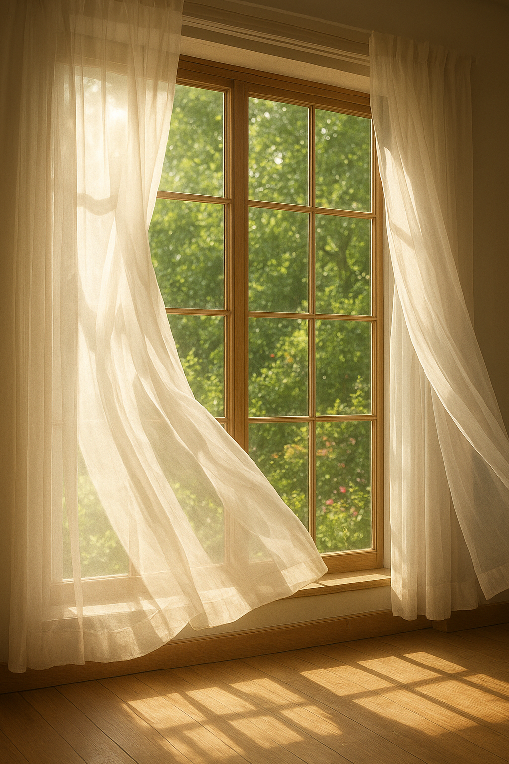 やわらかな光がカーテンを透けて、部屋の中にすべり込んでいた。